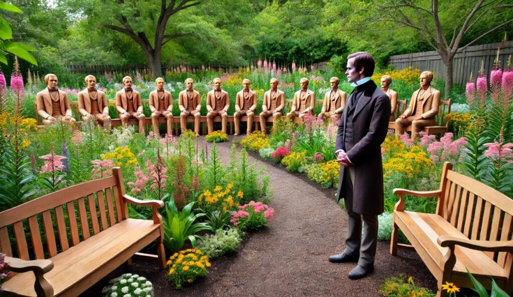 “By limping along with great difficulty, I finally reached the gate; and, on entering it, I saw the before mentioned garden, which was beautiful beyond description, being filled with the most delicate flowers of every kind and color. In the garden were walks about three and a half feet wide, which were set on both sides with marble stones. One of the walks ran from the gate through the center of the garden; and on each side of this was a very richly carved seat, and on each seat were placed six wooden images, each of which was the size and form of a very large man. When I came to the first image on the right side, it arose and bowed to me with much respect. I then turned to the one which sat opposite me, on the left side, and it arose and bowed to me in the same manner as the first. I continued turning, first to the right and then to the left, until the whole twelve had paid their respects, after which I was entirely healed. I then asked my guide the meaning of all this, but I awoke before I received an answer.”