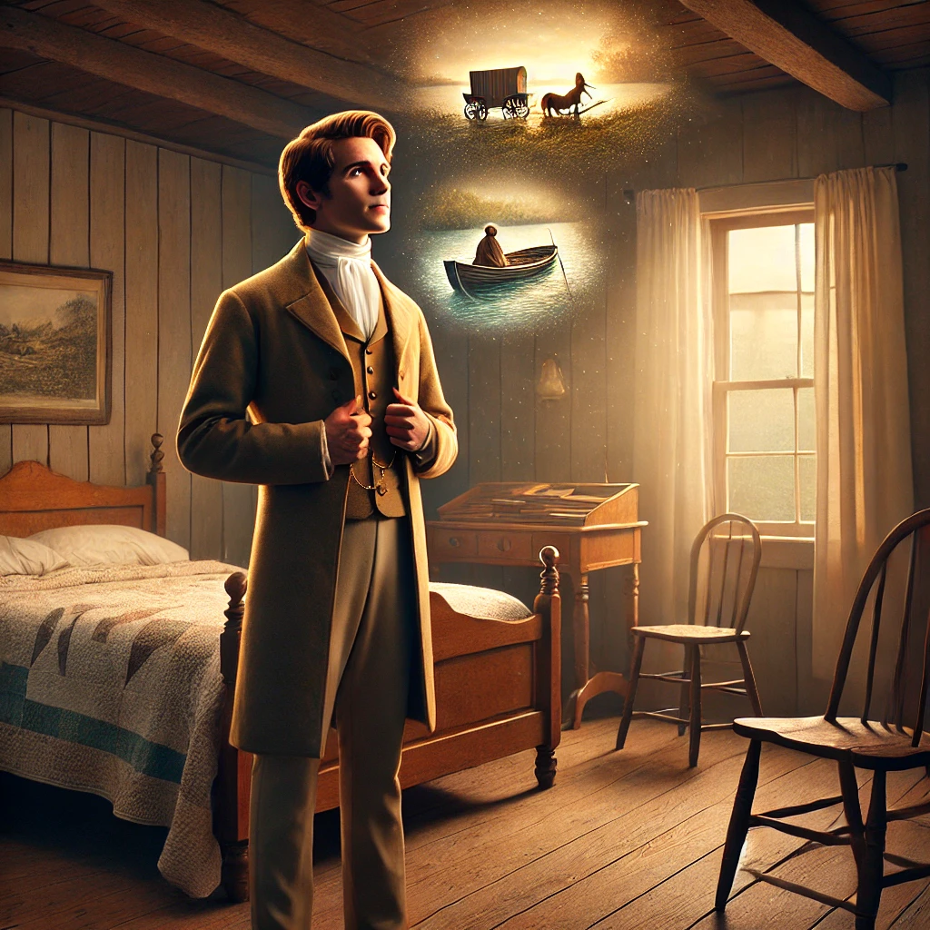 On the 6th of May I gave the parting hand to the brethren in Independence, and in company with Brothers Rigdon and Whitney, commenced to return to Kirtland, by stage to St. Louis, from thence to Vincennes, Indiana; and from thence to New Albany, near the falls of the Ohio River. Before we arrived at the latter place, the horses became frightened, and while going at full speed Bishop Whitney attempted to jump out of the coach, but having his coat fast, caught his foot in the wheel, and had his leg and foot broken in several places; at the same time I jumped out unhurt. We put up at Mr. Porter’s public house, in Greenville, for four weeks, while Elder Rigdon went directly forward to Kirtland. During all this time, Brother Whitney lost not a meal or victuals or a night’s sleep, and Dr. Porter, our landlord’s brother, who attended him, said it was a pity we had not got some “Mormon” there, as they could set broken bones or do anything else. I tarried with Brother Whitney and administered to him till he was able to be moved. …