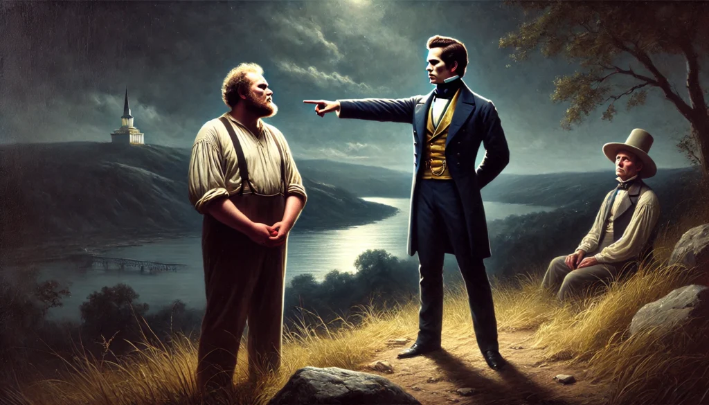 Jackson had done many friendly and serviceable deeds to Joseph, and when he thought Joseph was completely off his guard and wrapped up in Jackson as a real friend, he asked Joseph out one evening, a little after dark, to talk confidentially. They walked leisurely along towards the Mississippi River, talking in a friendly manner, until they reached the top of the hill, a few rods from the river, when Joseph stopped and turned to Jackson saying, “I know what your design and object is tonight. Now don’t take your hands out of your pockets, nor make a motion like it, or I will show the power of God.”
